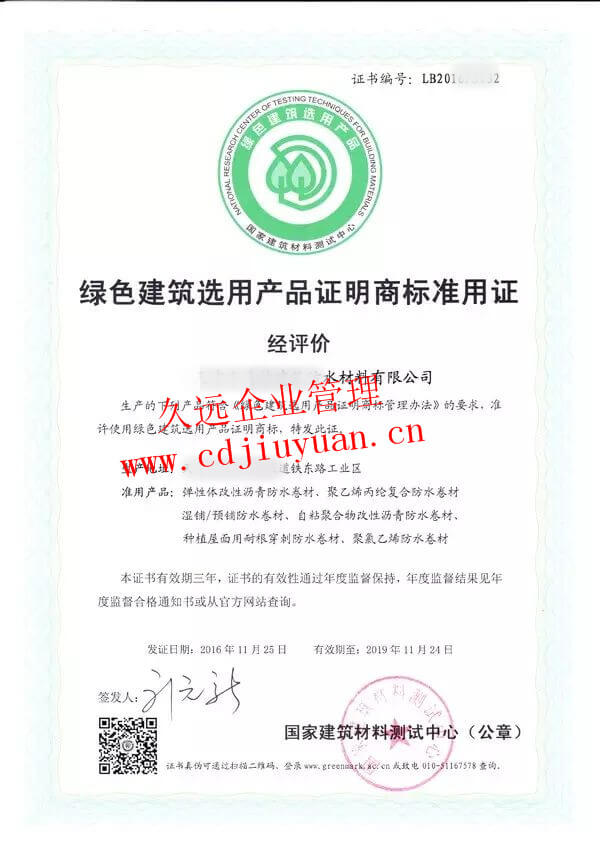 綠色建筑選用產(chǎn)品認(rèn)證證書(shū)