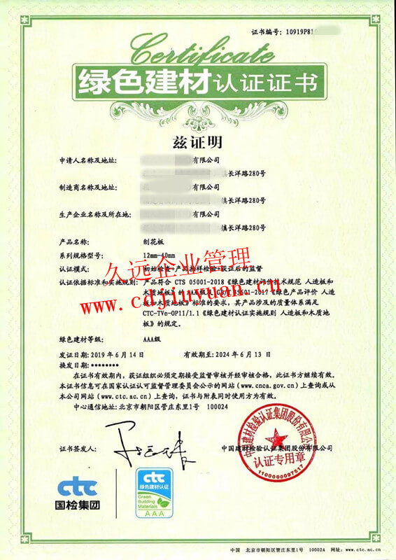 綠色產(chǎn)品認(rèn)證證書(shū)