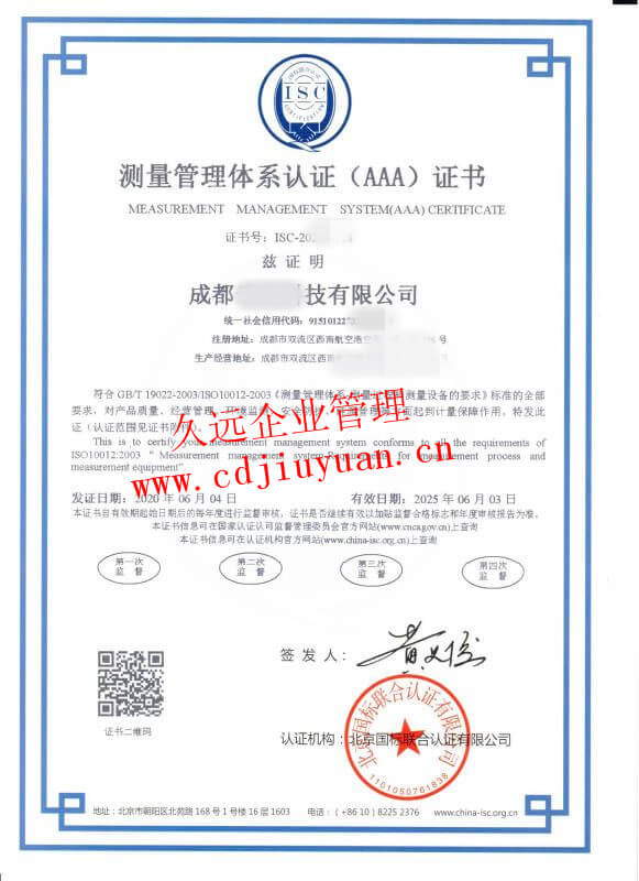 質(zhì)量管理體系認(rèn)證證書(shū)